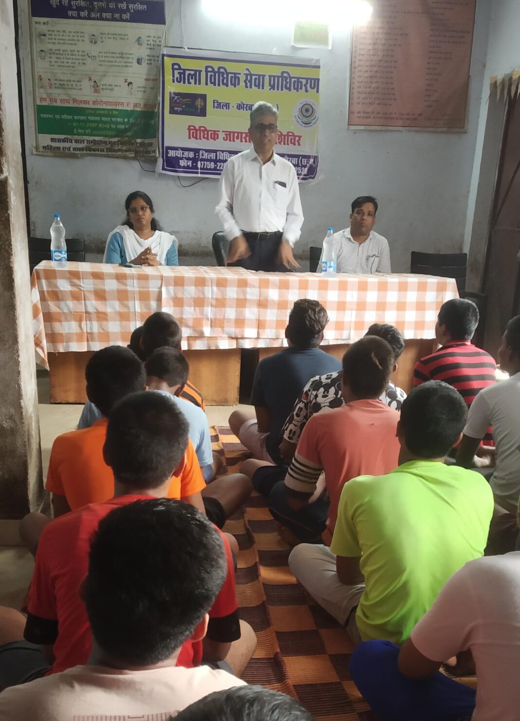 माननीय श्री सत्येन्द्र कुमार साहू, प्रधान जिला एवं सत्र न्यायाधीश एवं अध्यक्ष जिला विधिक सेवा प्राधिकरण कोरबा एवं कु. डिम्पल, सचिव जिला विधिक सेवा प्राधिकरण कोरबा के द्वारा बाल सम्प्रेक्षण गृह रिस्दी कोरबा का आकस्मिक निरीक्षण करते हुये बालको को विधिक जानकारी दिये जाने के प्रयोजनार्थ विधिक जागरूकता शिविर का आयोजन किया गया।