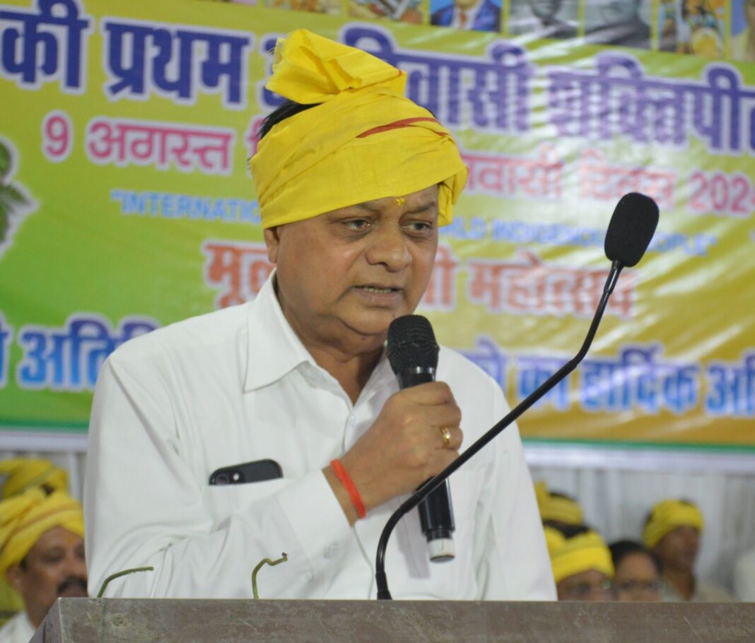 कोरबा 09 अगस्त 2023/ विश्व आदिवासी दिवस के अवसर पर बुधवारी स्थित आदिवासी शक्तिपीठ स्थल पर आयोजित मूल निवासी महोत्सव कार्यक्रम में पहुंचे वाणिज्य उद्योग एवं श्रम मंत्री श्री लखन लाल देवांगन ने मुख्य अतिथि के रूप में अपने उद्बोधन में कहा कि मुख्यमंत्री श्री विष्णुदेव साय के नेतृत्व में राज्य में आदिवासी समाज ही नहीं सभी समाज के कल्याण के लिए योजनाएं बनाकर उनका उत्थान किया जा रहा है। वे एक संवेदनशील मुख्यमंत्री हैं और गरीबों के कल्याण के लिए कार्य कर रहे हैं। प्रदेश का मुख्यमंत्री आदिवासी समाज से है। देश का महामहिम राष्ट्रपति भी आदिवासी समाज से हैं। इससे बहुत गौरव की अनुभूति होती है। उन्होंने कहा कि प्रधानमंत्री श्री नरेंद्र मोदी देश को विकास के रास्ते पर आगे ले जाना चाहते हैं। वर्ष 2047 तक उन्होंने विकसित भारत का लक्ष्य निर्धारित किया है। आप सभी देश को विकास के रास्ते पर ले जाने सहयोग करें।