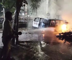 जानकारी के मुताबिक, वैन में आग इतनी बढ़ गई थी कि वो पूरी गाड़ी में फैल गई थी। गाड़ी आग का गोला बन गई थी। फायर ब्रिगेड की टीम ने तुरंत लोगों को वहां से दूर किया और पानी से आग को बुझाने का काम किया। टीम ने लगभग एक घंटे की कड़ी मशक्कत के बाद एक दमकल गाड़ी पानी की सहायता से आग पर काबू पाया और सुबह 4.30 बजे वहां से चली गई।