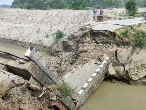 बिहार में 5 दिनों में दूसरा पुल ढह गया। शनिवार सुबह सीवान के महाराजगंज अनुमंडल के पटेढ़ा और गरौली गांव के बीच गंडक नहर पर बना पुल अचानक टूट गया। एक पिलर के धंसते ही पुल भर-भराकर नहर में समा गया।