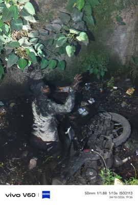 कोरबा (ब्लैकआउट न्यूज़) कोरबा डीएम रोड में स्थित साईं पैलेस के समीप नाले में मुड़ापार का एक बाइक सवार युवक जिसका नाम ओम प्रकाश बताया जा रहा हैं जा गिरा इस हादसे में युवक को हल्की चोटें आई है लेकिन नगर पालिका निगम के सफाई की पोल जरूर खुल गयी हैं नाले को देख कर सहज ही अंदाजा लगाया जा सकता है की वह खुला नाला लंबे समय से सफाई नहीं हुआ है युवक के गिरने के बाद मोहल्ले वालों ने रस्से से निकलने का प्रयास किया लेकिन नाला इतना गहरा है और दलदल से भरा हुआ है कि उसे कई लोग मिलकर भी युवक को नहीं निकाल पाए बाद में सीढ़ी लाकर उस युवक को बाहर निकाला गया जब सीढ़ी को नाले में डाला गया तो सीढ़ी का आधा हिस्सा नाले के दलदल में धंस गया था इससे यह पता चलता है कि निगम के ठेकेदार सफाई के नाम पर खानापूर्ति कर नगर निगम के पैसों की बंदर बांट कर रहे हैं.
