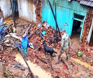 केरल के पहाड़ी जिले वायनाड में भारी बारिश ने तबाही मचाई है। वायनाड में भूस्खलन की कई घटनाएं सामने आई हैं। इस प्राकृतिक हादसे में अब तक 300 से ज्यादा लोगों की जान जा चुकी है। सैकड़ों लोग अब भी लापता हैं। भूस्खलन के मलबे में दबे शवों या संभावित जीवित लोगों को निकालने का काम अब भी किया जा रहा है। बचाव दल उन्नत तकनीकी उपकरण रडार और डॉग स्क्वायड टीम का इस्तेमाल कर रहे हैं। शनिवार को लेफ्टिनेंट कर्नल मोहनलाल ने बचाव कार्यों में शामिल सभी कर्मियों का मनोबल बढ़ाने के लिए अपनी 122 इन्फैंट्री बटालियन और टीए मद्रास के साथ वायनाड भूस्खलन क्षेत्र का दौरा किया है।