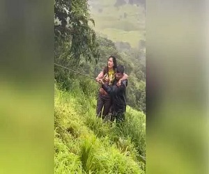युवती के नीचे गिरने के बाद स्थानीय लोग रस्सी लेकर आए। इस दौरान एक युवक उसकी जान बचाने के लिए रस्सी के सहारे में देवदूत बनकर नीचे की और जाता दिखता है, नीचे से वह युवती को रस्सी के सहारे ऊपर की और खींचते हुए लाता है। वीडियो में देखा जा सकता है कि रेस्क्यू ऑपरेशन के दौरान युवती दर्द से चीख रही है। स्थानीय लोगों की मदद से उसे स्थानीय अस्पताल में भर्ती कराया गया है। उसे काफी चोट लगी है।