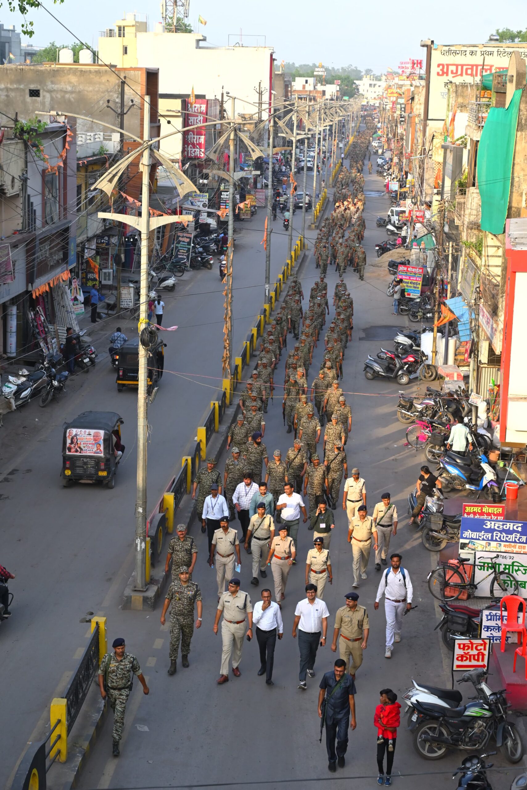 कोरबा. जिला कोरबा में आज दिनांक 03.05.2024 को श्री अजीत बसंत कलेक्टर कोरबा, श्री सिद्धार्थ तिवारी भापुसे. पुलिस अधीक्षक कोरबा, श्री संबित मिश्रा सीईओ ज़िला पंचायत के द्वारा लोकसभा निर्वाचन-2024 में शांतिपूर्ण मतदान कराये जाने के उद्देश्य से फ्लैग मार्च सीएसईबी ग्राउंड से प्रारंभ किया गया और थाना कोतवाली में समाप्त हुआ। जिसमें जिला के राजपत्रित अधिकारी, थाना/चौकी प्रभारी, चुनाव डियूटी हेतु दिगर राज्य / इकाई से आये अर्द्ध सैनिक बल के अधिकारी एवं कर्मचारीगण, यातायात बल, नगर सैनिक, छत्तीसगढ़ सशस्त्र बल आर्म्स- एम्युनेशन व साजो-सामान, थाना व यातायात के पेट्रोलिंग वाहनों के साथ शहर के मुख्य मार्ग एवं चौक-चौराहो पर पैदल फ्लैग मार्च किया गया। पुलिस अधीक्षक महोदय के द्वारा बताया गया कि फ्लैग मार्च निकालने का मुख्य उद्देश्य लोकसभा चुनाव में आमजन निर्भिक होकर अपने-अपने घरो से निकल कर मतदान केन्द्रो में जाकर अपने मतो का उपयोग करे और इसके दौरान किसी भी प्रकार की कोई रोक-टोक असमाजिक तत्वो द्वारा न हो ये विश्वास दिला सके। फ्लैग मार्च के ज़रिए बल की उपलब्धता होने का प्रदर्शन किया गया, ताकि मतदान शांतिपूर्ण सम्पन्न हो सके एवं जनता सुरक्षित महसूस करे।