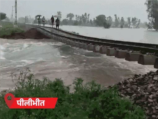 यूपी के पीलीभीत में बारिश और बाढ़ से हालात बिगड़ना शुरू हो गए हैं। शहर के कई इलाकों में पानी भर गया। पुलिस ने अनाउसमेंट करके लोगों को घर खाली करने के लिए कहा है। तेज बहाव में रेलवे ट्रैक के नीचे की पुलिया बह गई। सड़कों पर नाव चल रही है।