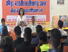 क्रीड़ा भारती सह संगठन मंत्री तारणीश गौतम ने क्रीड़ा भारती के संगठन, उद्देश्य पर प्रकाश डाला. अर्न्तराष्ट्रीय हॉकी खिलाड़ी नीता डुमरे ने क्रीड़ा केन्द्र में प्रशिक्षकों की भूमिका पर विस्तार से चर्चा की. क्रीड़ा भारती के प्रदेश कार्यकारिणी सदस्य सुधीर राजपाल ने खिलाड़ियों के कौशल विकास पर अपना विचार प्रकट किया, विभाग संयोजक छगनलाल सोनवानी ने योगासान, सूर्य नमस्कार व शारिरिक अभ्यास द्वारा क्रीड़ा केन्द्र प्रशिक्षकों को योग के महत्व को समझाया.