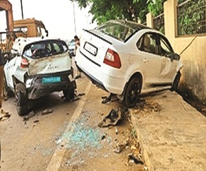 इसी बीच सड़क पर कुछ मवेशी सामने आ गए और चालक ने ब्रेक लगाया, लेकिन गाड़ी नहीं रोक पाया। वहीं, पीछे से आ रही एक अन्य कार ने पीछे से उक्त कार को टक्कर मारी, जिससे एयरपोर्ट की ओर जाने वाली कार मवेशियों से टकराकर सड़क के किनारे नाले में जा गिरी। वहीं, जिस कार ने टक्कर मारी उसका भी सामने और पीछे दोनों ही ओर का हिस्सा क्षतिग्रस्त हो गया।